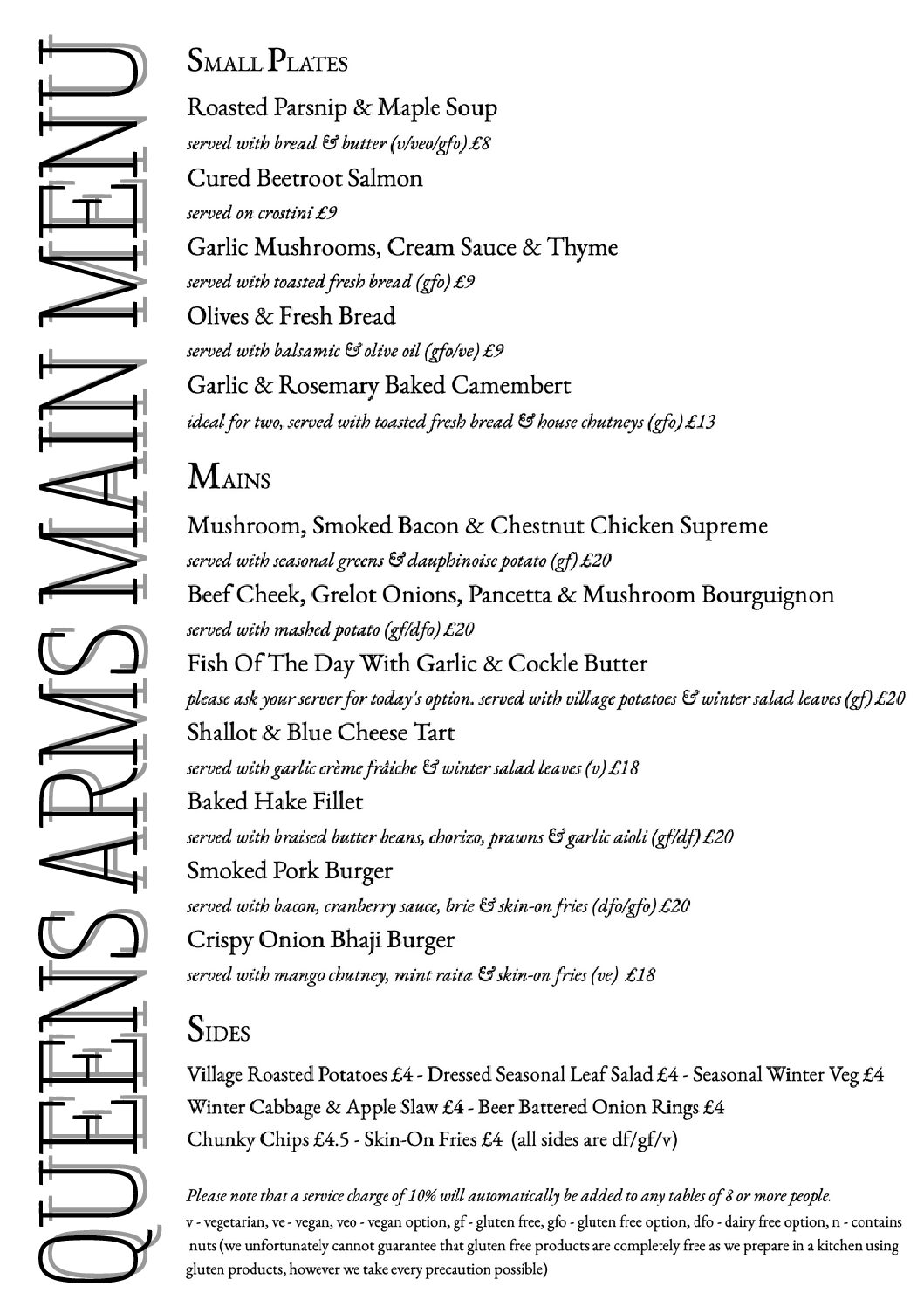 Please note that prices shown on this website may vary from time to time from what is shown / listed in the pub. If this is the case then the management have the final decision regarding the correct price. Menu choices may vary from time to time.